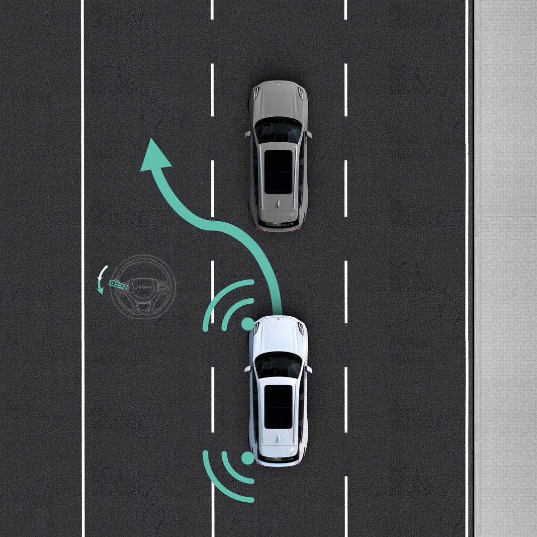 - ELKA Plus Hỗ trợ giữ làn đường khẩn cấp plus, với tính năng phát hiện xe phía sau