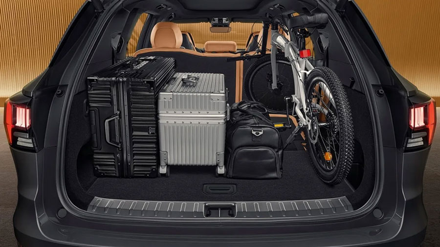 Lynk & Co 09 được tối ưu hoá không gian nên khi dựng cả 3 hàng ghế khoang hành lý 269L, gập hàng ghế 3 là 862L, gập hàng ghế 2 và 3 là 2000L thoải mái trở đồ hay nhiều bộ Golf.